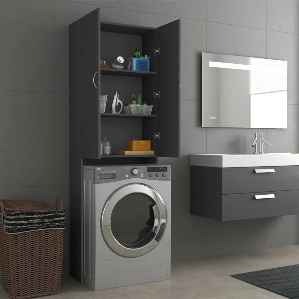 With this washing machine cabinet, you can create and optimally use additional storage space in the bathroom. The clean lines and sleek design make it blend into your bathroom perfectly. This bathroom cupboard is sturdy and durable. The 2 doors and 3 compartments offer ample storage room for keeping your laundry utensils, cleaning supplies, toiletries and other items well organised and within reach. Additionally, this cabinet is easy to clean with a damp cloth.