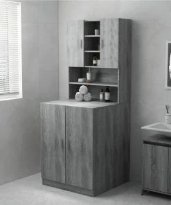 With this washing machine cabinet, you can create and optimally use additional storage space in the bathroom. The clean lines and sleek design make it blend into your bathroom perfectly. This bathroom cupboard is sturdy and durable. It offers ample storage room for keeping your laundry utensils, cleaning supplies, toiletries and other items well organised and within reach. Additionally, this cabinet is easy to clean with a damp cloth.