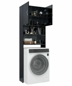 With this washing machine cabinet, you can create and optimally use additional storage space in the bathroom. The clean lines and sleek design make it blend into your bathroom perfectly. Made of chipboard, the bathroom cupboard is sturdy and durable. The 2 open compartments and 2 doors offer ample storage room for keeping your laundry utensils, cleaning supplies, toiletries and other items well organised and within reach. Additionally, this cabinet is easy to clean with damp cloth. This washing machine cupboard is easy to assemble with included mounting materials.