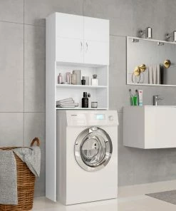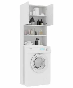 With this washing machine cabinet, you can create and optimally use additional storage space in the bathroom. The clean lines and sleek design make it blend into your bathroom perfectly. Made of chipboard, the bathroom cupboard is sturdy and durable. The 2 open compartments and 2 doors offer ample storage room for keeping your laundry utensils, cleaning supplies, toiletries and other items well organised and within reach. Additionally, this cabinet is easy to clean with damp cloth. This washing machine cupboard is easy to assemble with included mounting materials.