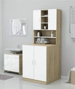 With this washing machine cabinet, you can create and optimally use additional storage space in the bathroom. The clean lines and sleek design make it blend into your bathroom perfectly. This bathroom cupboard is sturdy and durable. The 2 doors offer ample storage room for keeping your laundry utensils well organised. Additionally, this cabinet is easy to clean with a damp cloth.