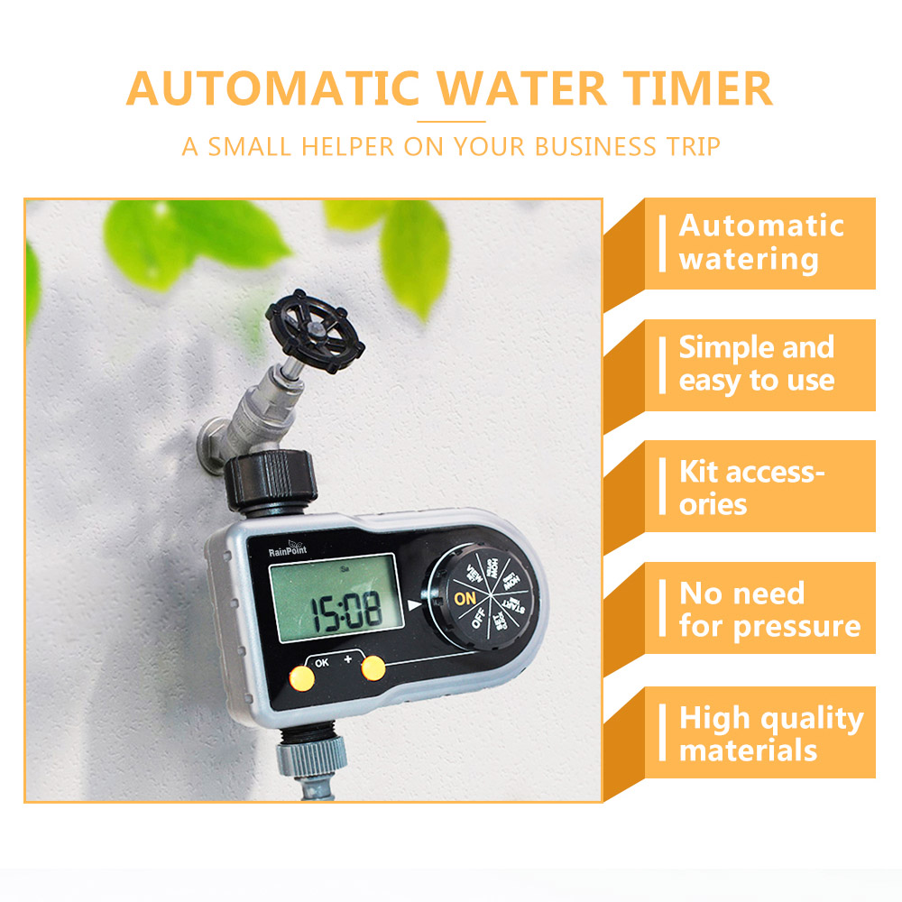 This hose timer has 3 watering plans per day, each program can set its own start time (12h or 24h mode) and watering duration (1min-3h59min).