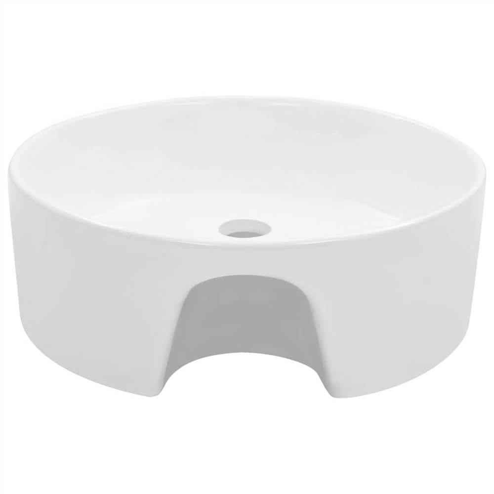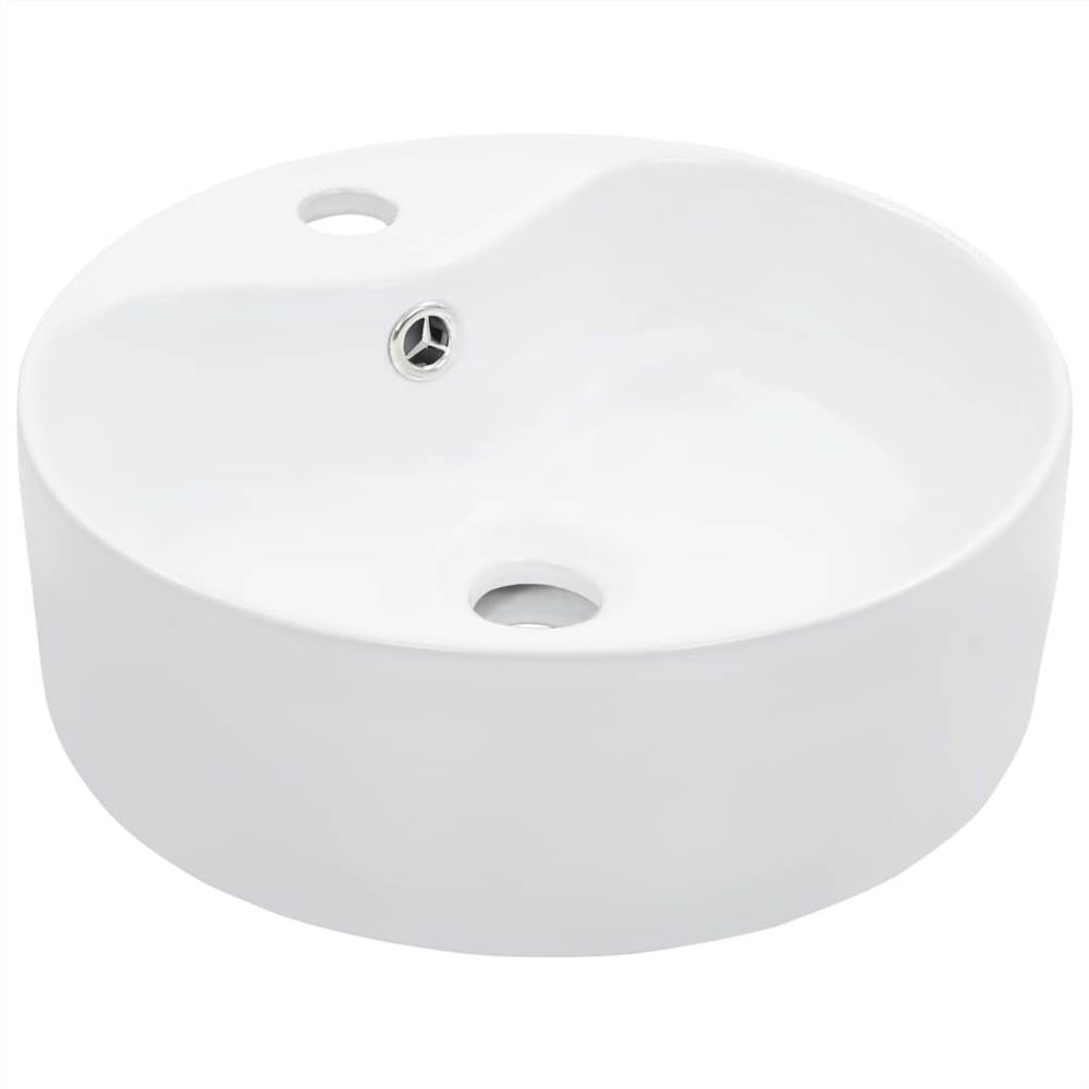 Made of ceramic, this round basin will be a chic and timeless addition to any bathroom, washroom, cloakroom or powder room. The washroom basin can not only serve as vessel for daily use, but also an adornment in your living space. Thanks to its trendsetting and contemporary design, this wash basin will definitely suit any decor. Made of ceramic, the sink is considerably easy to clean. Additionally, its high gloss finish adds a charming touch to this bathroom basin. Equipped with an overflow, this basin will effectively flow water out when it gets too full. The basin has a faucet hole for installing a tap. Please note that the tap and the drain are not included in delivery.
