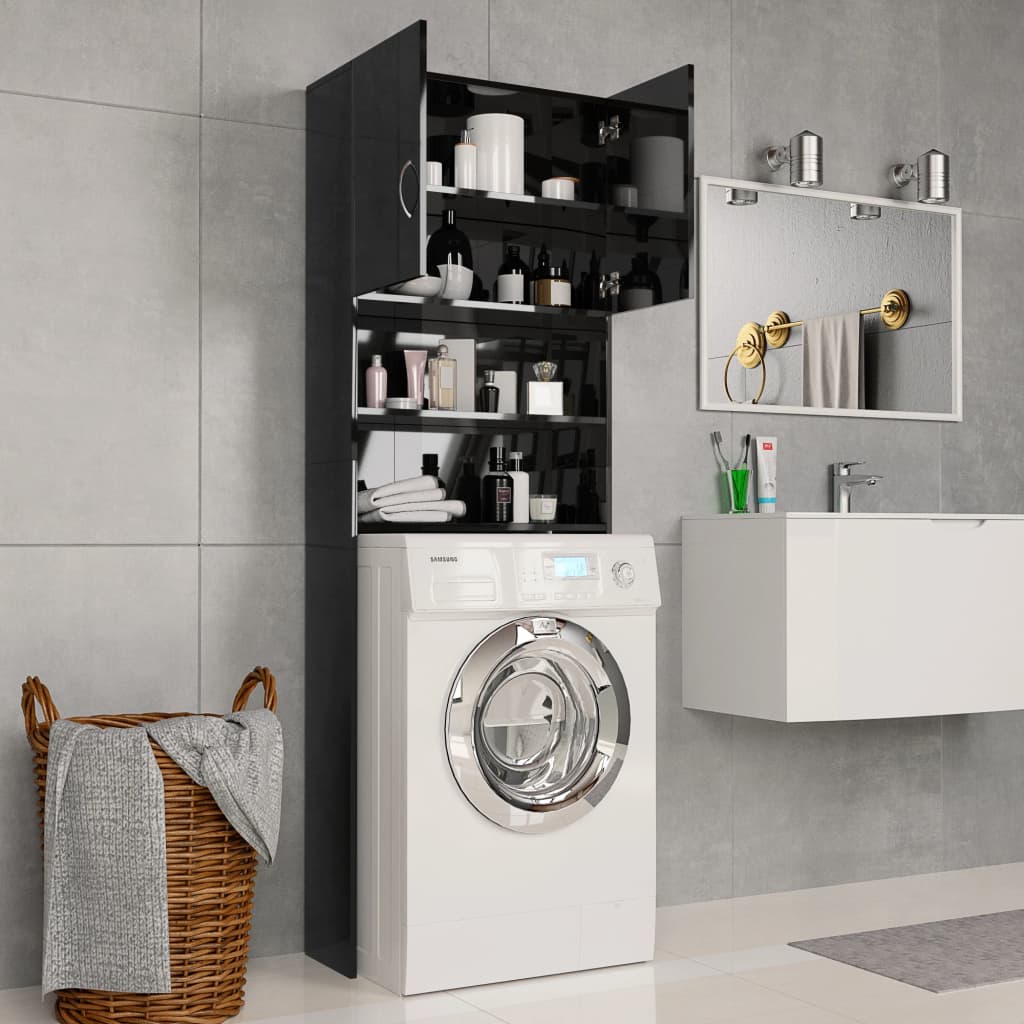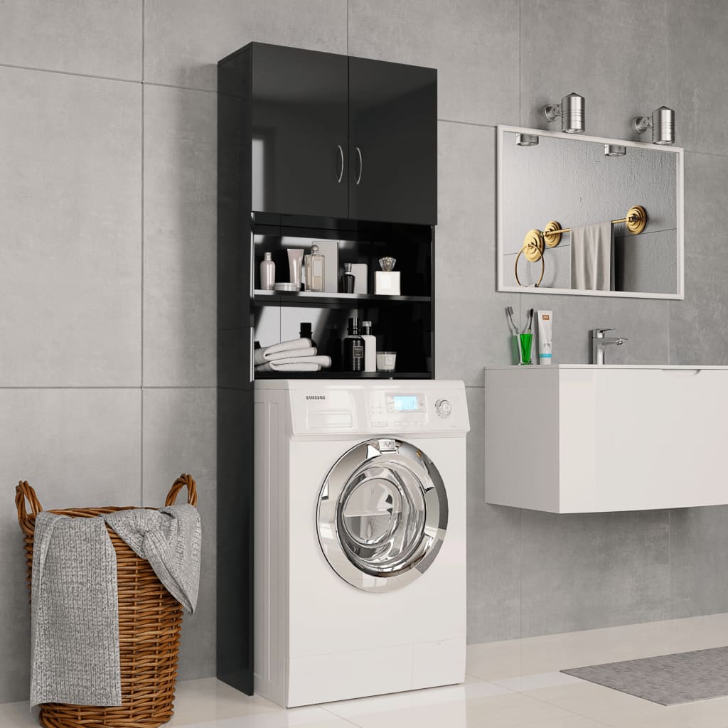 With this washing machine cabinet, you can create and optimally use additional storage space in the bathroom. The clean lines and sleek design make it blend into your bathroom perfectly. Made of chipboard, the bathroom cupboard is sturdy and durable. The 2 open compartments and 2 doors offer ample storage room for keeping your laundry utensils, cleaning supplies, toiletries and other items well organised and within reach. Additionally, this cabinet is easy to clean with damp cloth. This washing machine cupboard is easy to assemble with included mounting materials.